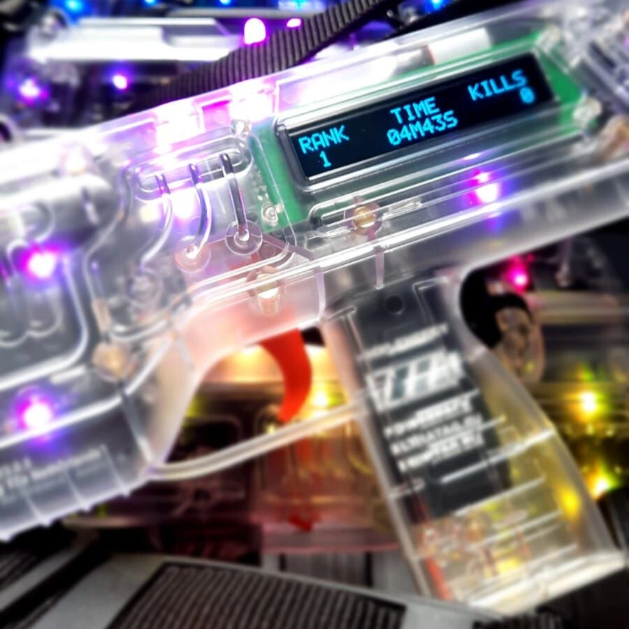 Instead of a vest-based setup, MiniTag uses a robust transparent laser gun, making gameplay straightforward and easy to understand for any audience. Bright, multi-color LEDs and a crystal-clear OLED display provide instant visual feedback, creating an engaging experience while keeping operation smooth for staff.